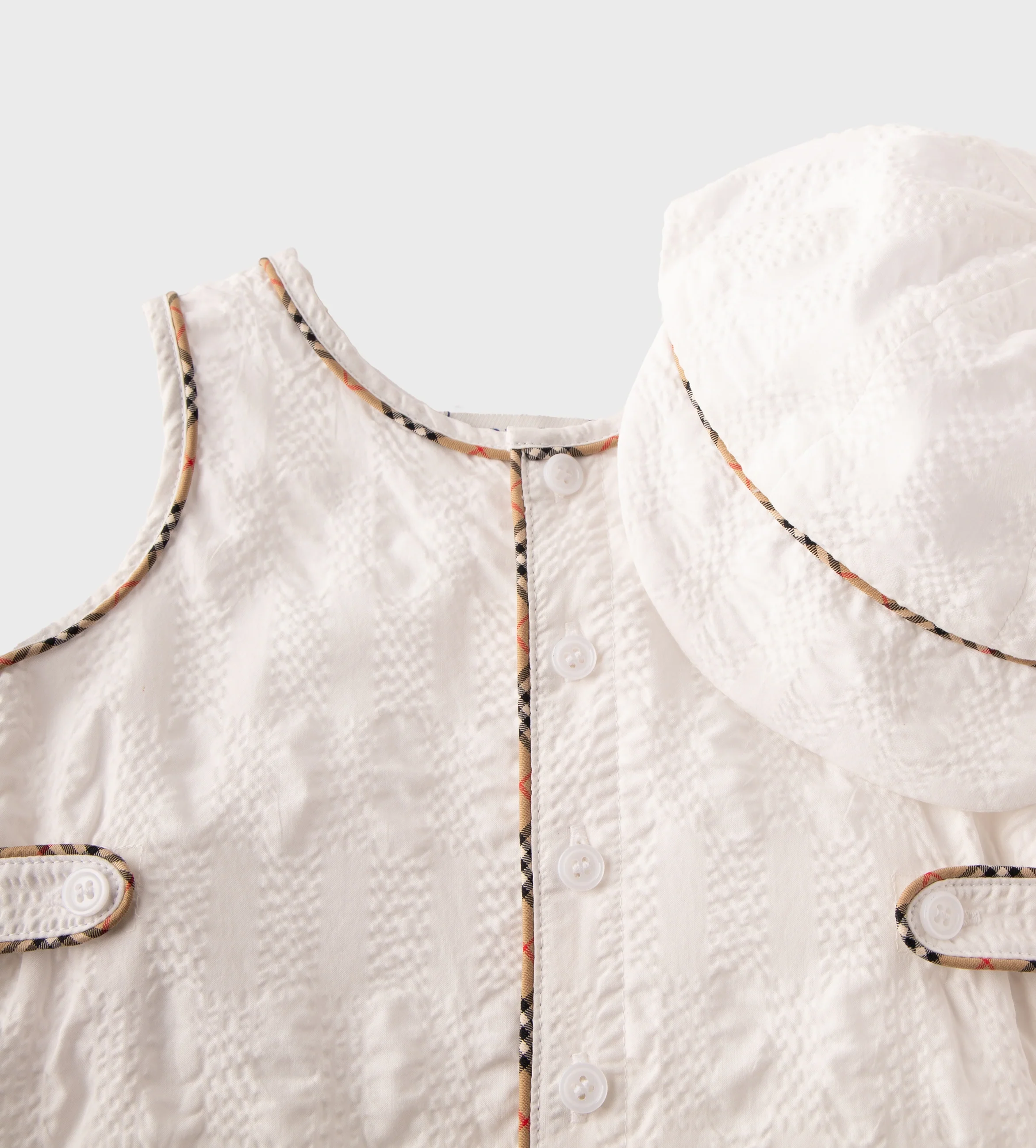 - Framed with Burberry Check piping.