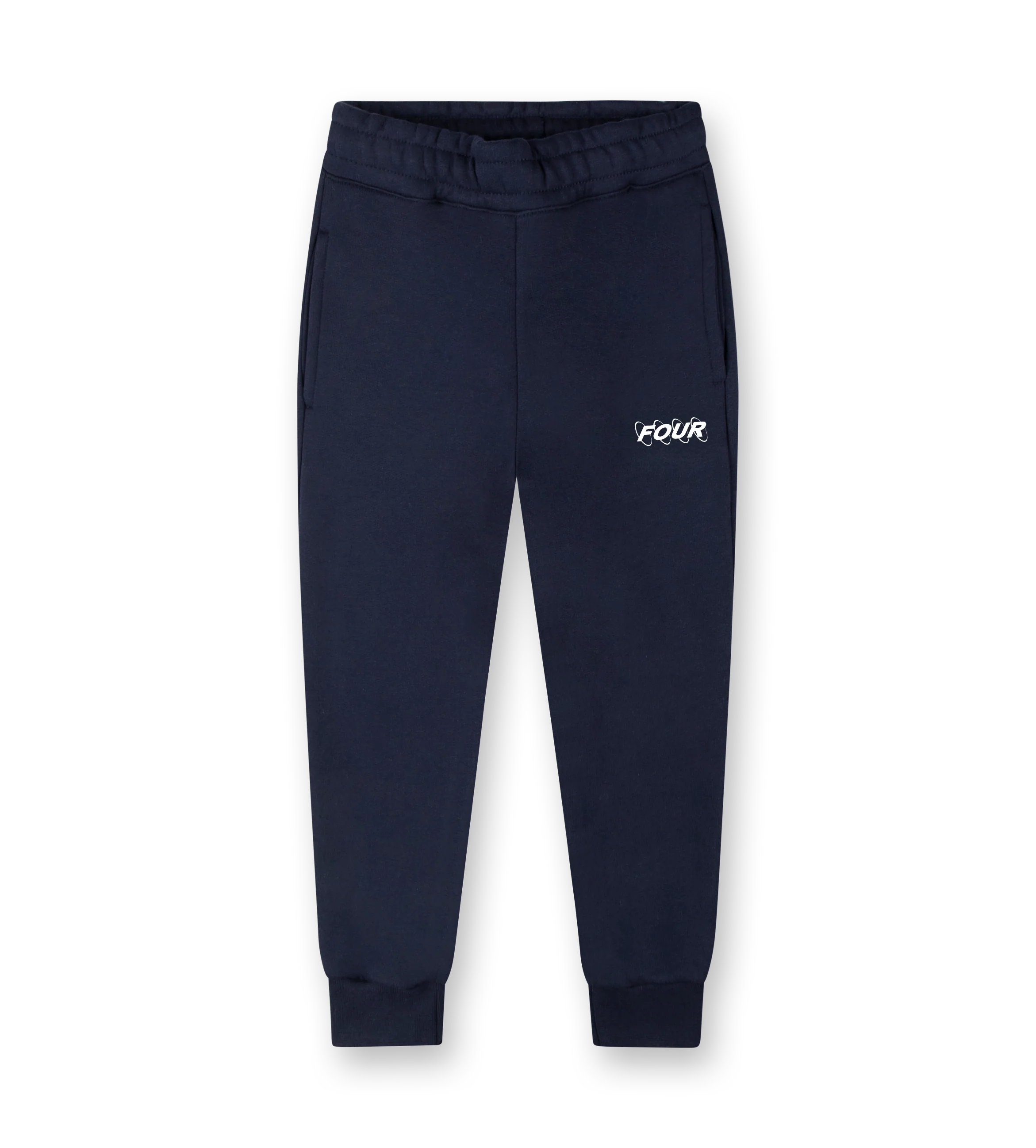 Designed for everyday comfort with a clean graphic identity, the FOUR Circles Logo Sweatpants in marine blue are made from 100 percent cotton fleece with a substantial 330 gsm weight. The Circles logo screenprint adds a bold, recognizable mark, while 1x1 ribbing provides structure and shape. An elastic waistband with drawcords ensures an adjustable, secure fit, and two-pocket styling keeps the silhouette practical for daily wear.