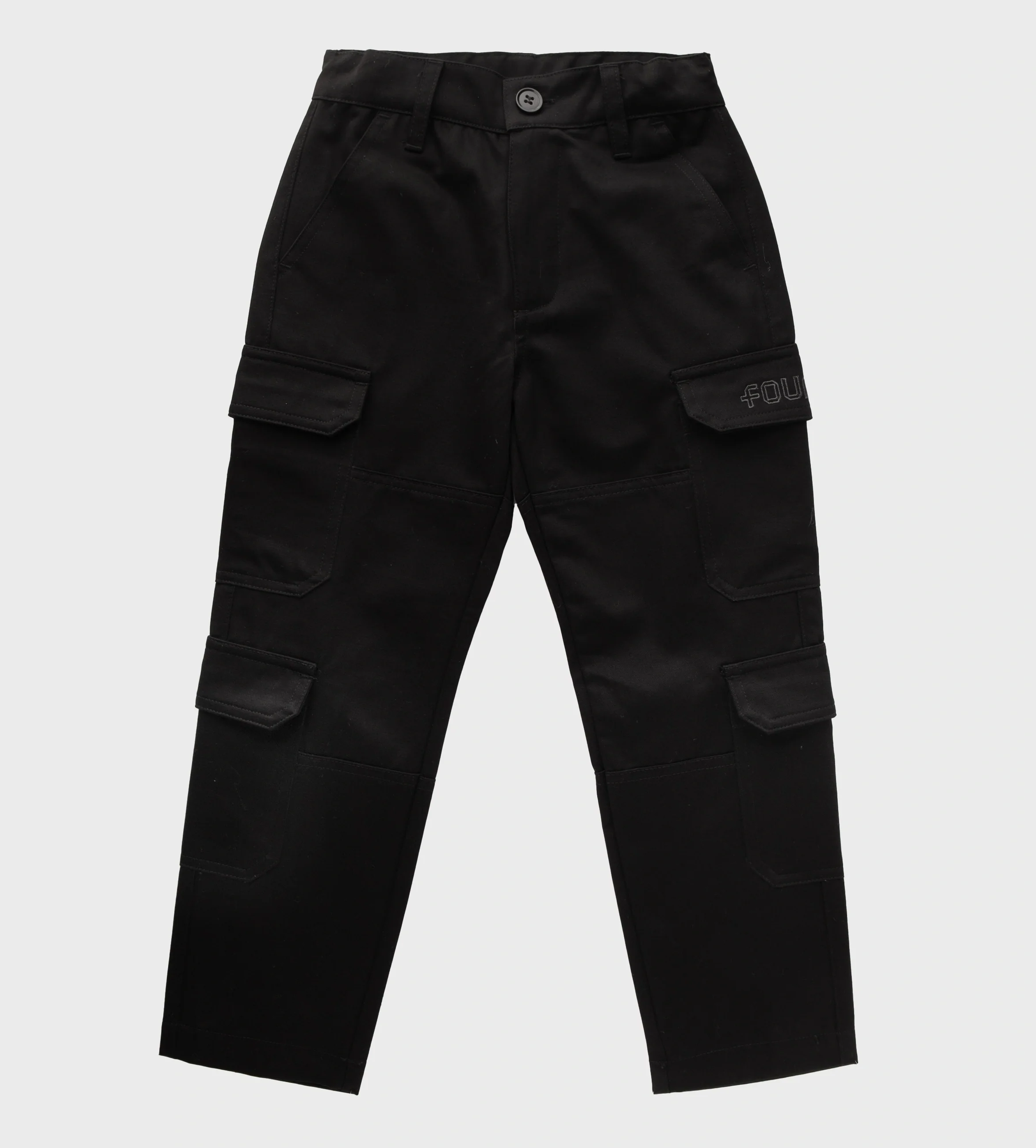 Designed for durability, structure and a clean utilitarian edge, the FOUR Cargo Pants in black feature a straight fit made from 100 percent cotton. The pants are equipped with four cargo pockets, two back pockets and two regular side pockets, offering extensive storage for everyday functionality.