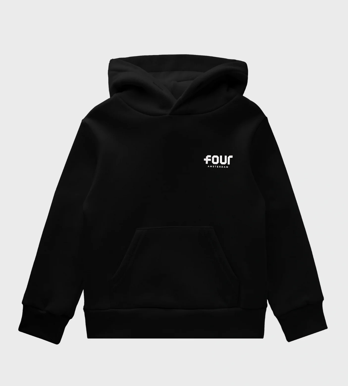 Designed for warmth, comfort and a clean graphic identity, the FOUR Logo Hoodie in black is made from cotton fleece of 100 percent cotton with a substantial 330 gsm weight. The bold logo screenprint stands out against the deep black tone, while 1x1 ribbing provides structure and a secure, comfortable fit.