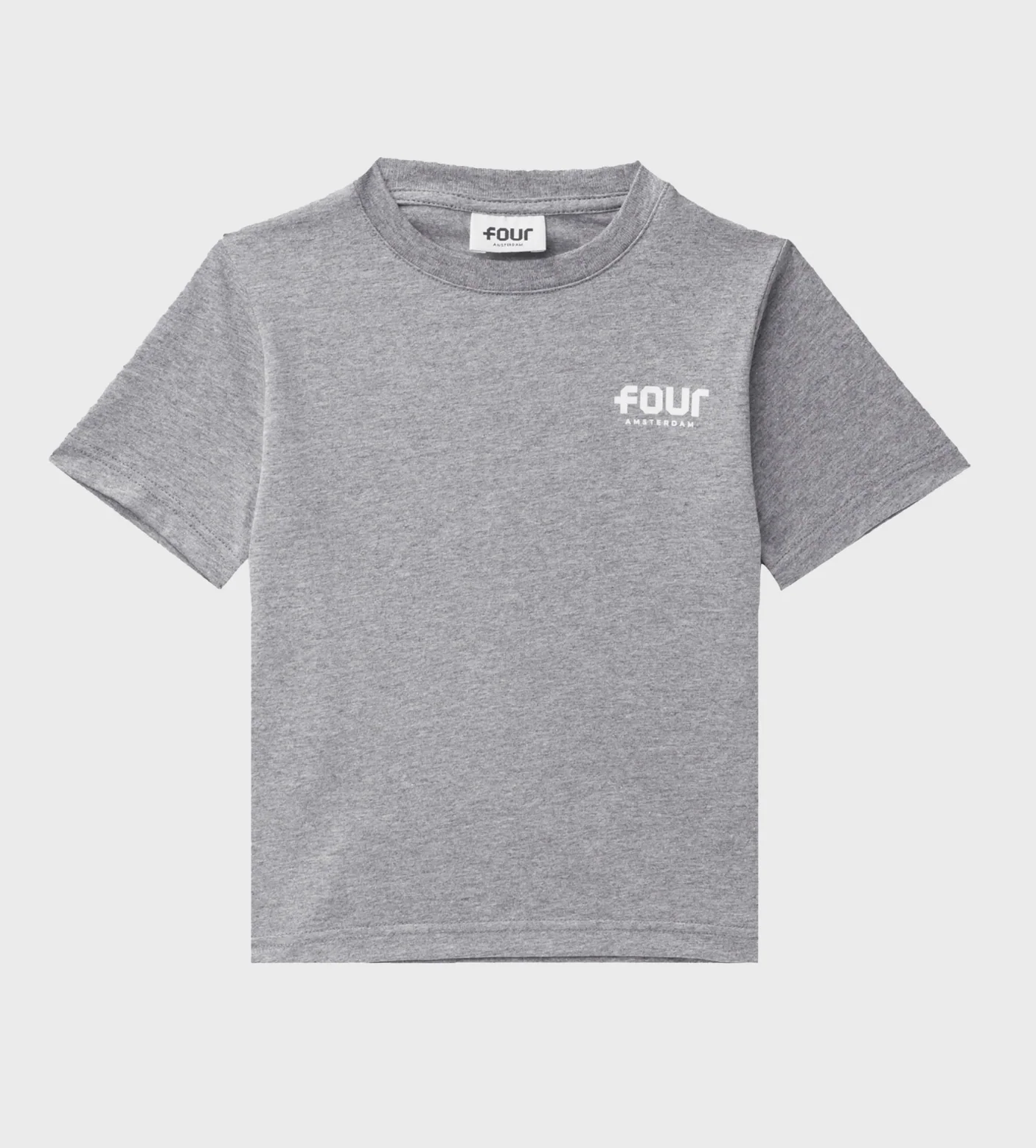 Designed for everyday comfort with a clean minimal identity, the FOUR Logo T-shirt in grey is made from single jersey fabric of 100 percent cotton with a lightweight 180 gsm feel. The logo screenprint adds a bold yet simple graphic detail to the neutral grey base, while 1x1 necktrimming provides structure and a comfortable finish.