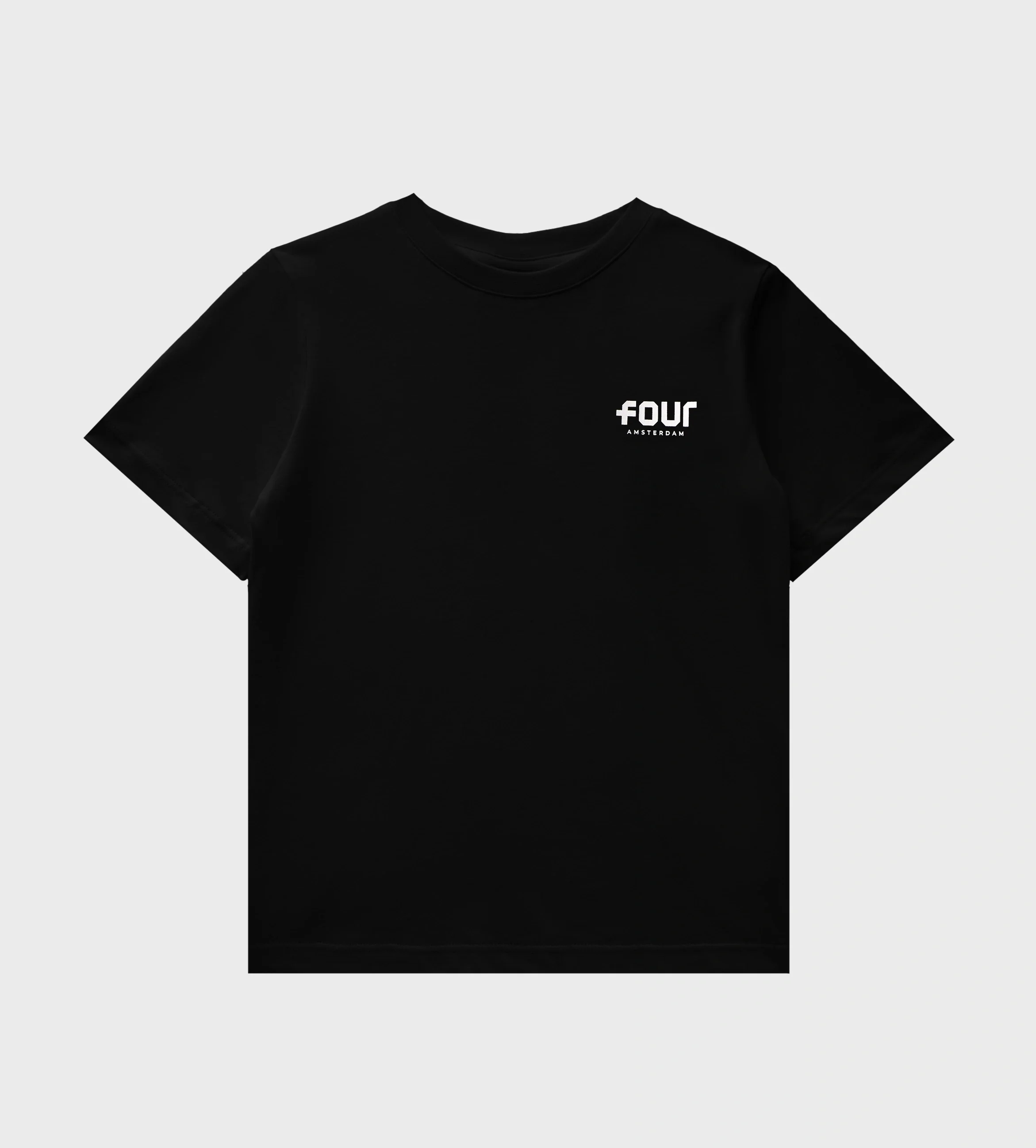 Designed for everyday comfort with a clean and bold graphic look, the FOUR Logo T-shirt in black is made from single jersey fabric of 100 percent cotton with a lightweight 180 gsm feel. The logo screenprint creates a strong visual statement on the deep black base, while 1x1 necktrimming provides structure and a comfortable finish.