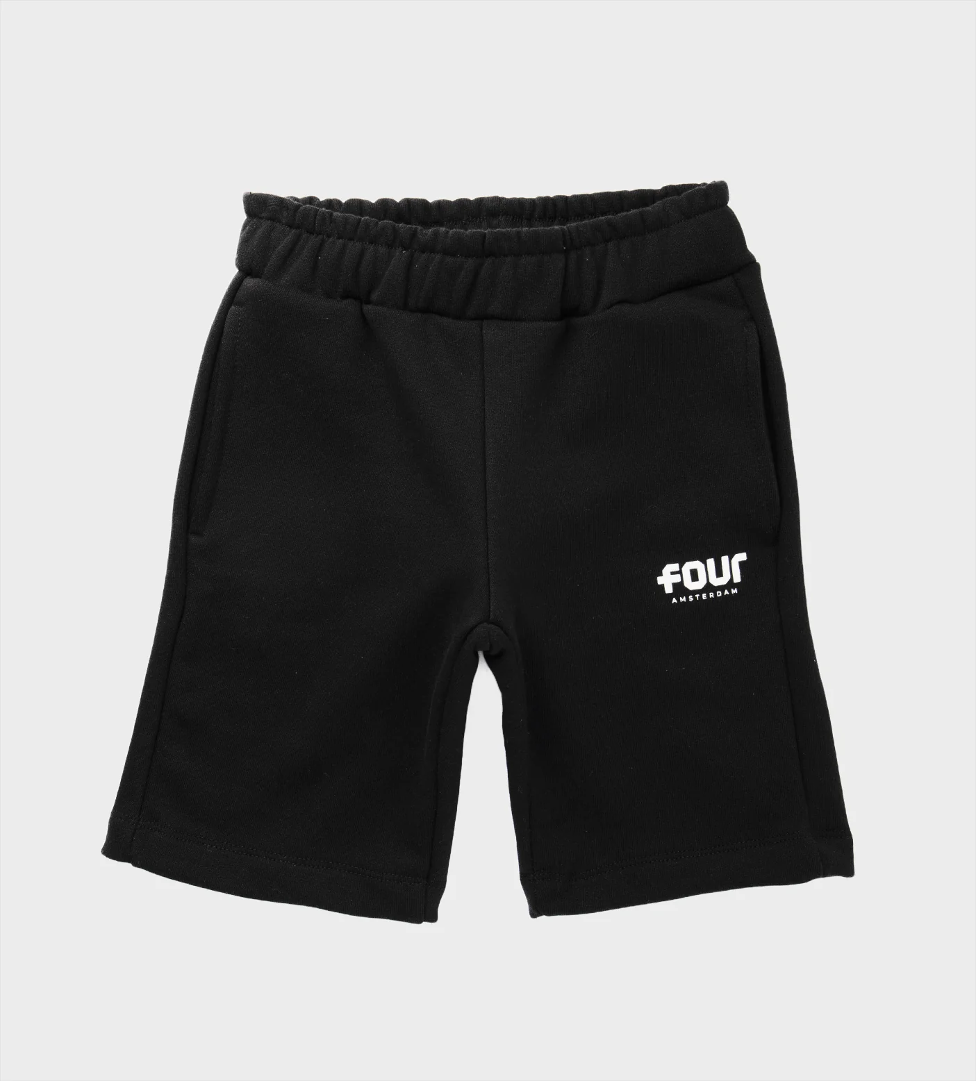 Designed for everyday comfort with a clean, bold graphic touch, the FOUR Logo Shorts in black are crafted from cotton fleece of 100 percent cotton with a substantial 330 gsm weight. The logo screenprint adds a striking visual detail to the deep black tone, while the elastic waistband with drawcords ensures a secure and adjustable fit.