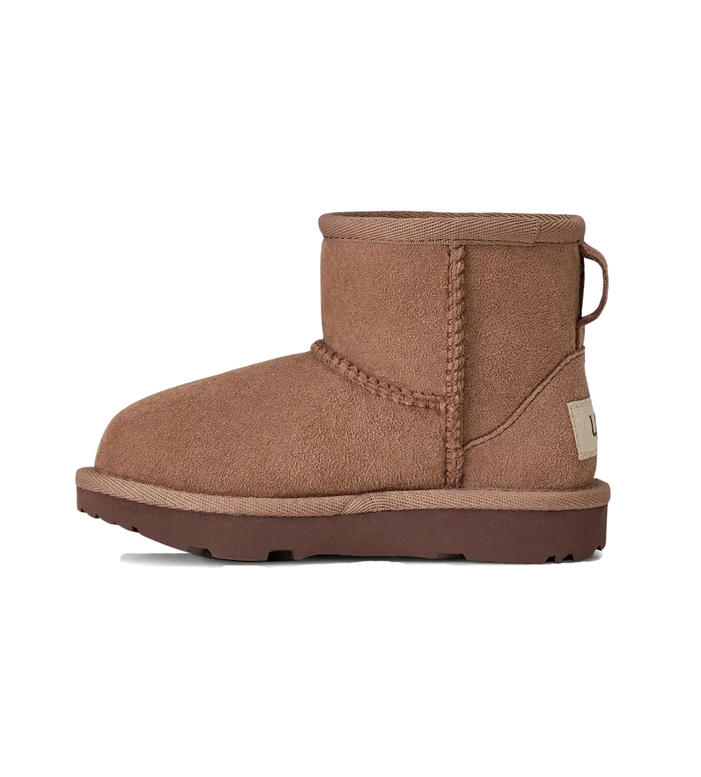 A snuggly classic made for little explorers. The UGG Classic Mini II is designed for cozy comfort, everyday warmth, and endless play. The signature suede exterior and plush sheepskin lining deliver that cloud-soft, barefoot-feel UGG is known for, while the ultra-light, flexible sole moves effortlessly with every step, skip, and spin.