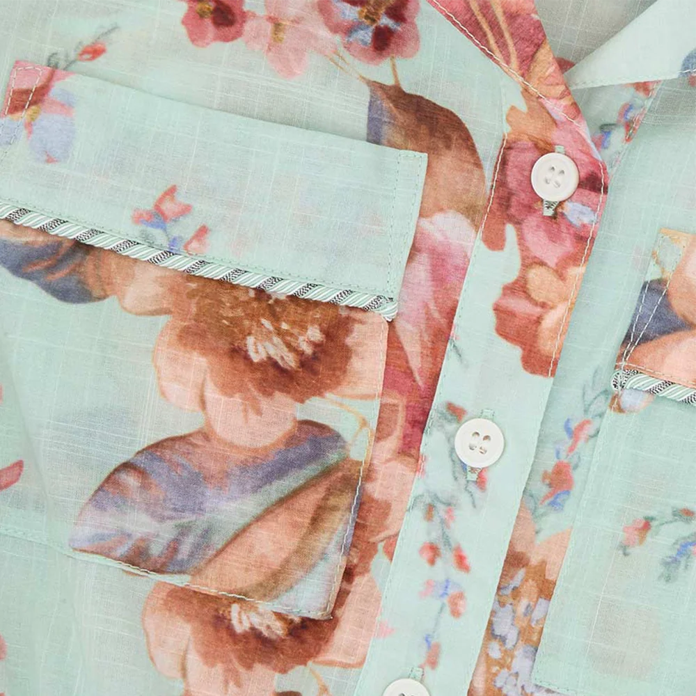Zimmermann Awaken Floral Pocket Playsuit in Mint (Kids)