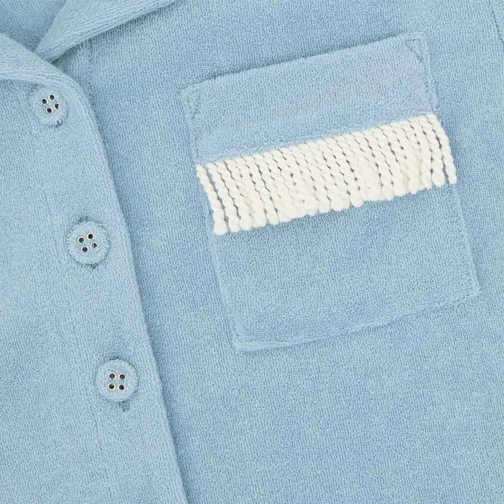 From the Resort Swim 2026 Collection, the Zimmermann Awaken Terry Top brings a relaxed, summery vibe to kids’ wardrobes. Crafted from soft terry towelling, it features a classic collar and short sleeves with wide cuffs for comfort and ease of movement. Functional centre front buttons allow for easy dressing, while a front left patch pocket adds practicality. Tassel fringe detailing at the cuffs, hem, and pocket gives the top a playful, textural finish, making it perfect for layering or pairing with matching bottoms for a coordinated look.